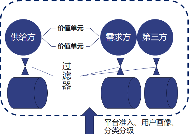 《平臺革命》提出了“核心互動”——一個(gè)平臺的通用應(yīng)用場景結(jié)構(gòu),即“參與者+價(jià)值單元+過濾器=核心互動”,在此本文稱之為“平臺的價(jià)值交互場景”。