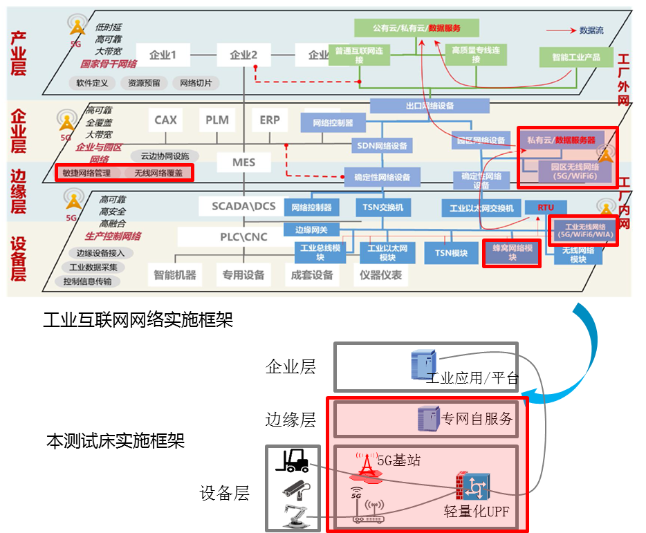 測試床適用于支撐智能工廠中的工業智能應用場景的工廠專網、園區專網方案