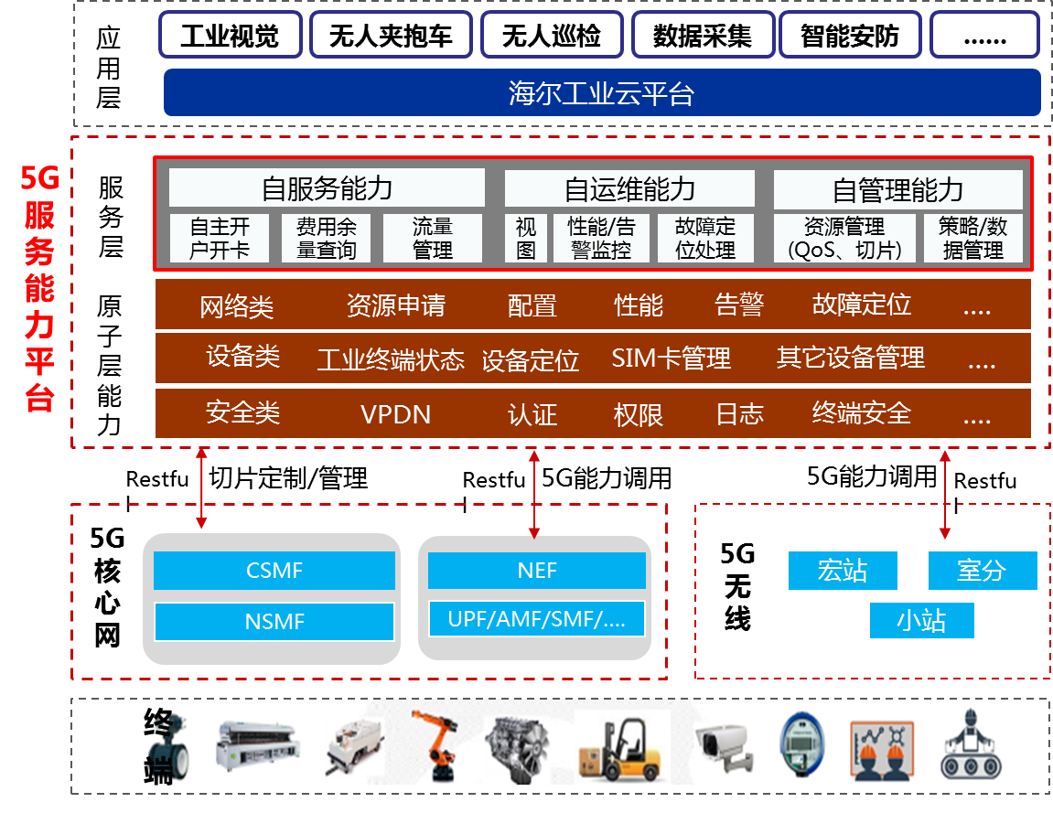 • 自研5G服務能力平臺,普遍適用于5G虛擬企業專網管理、運維、網絡能力開放。