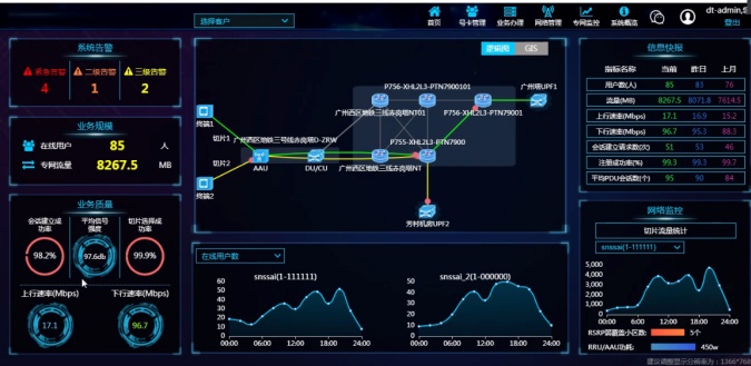 • 自運維能力:提供專網整體視圖和各設備運行狀態、監控設備告警,并提供初級處置能力和在線申請運營商協查等。