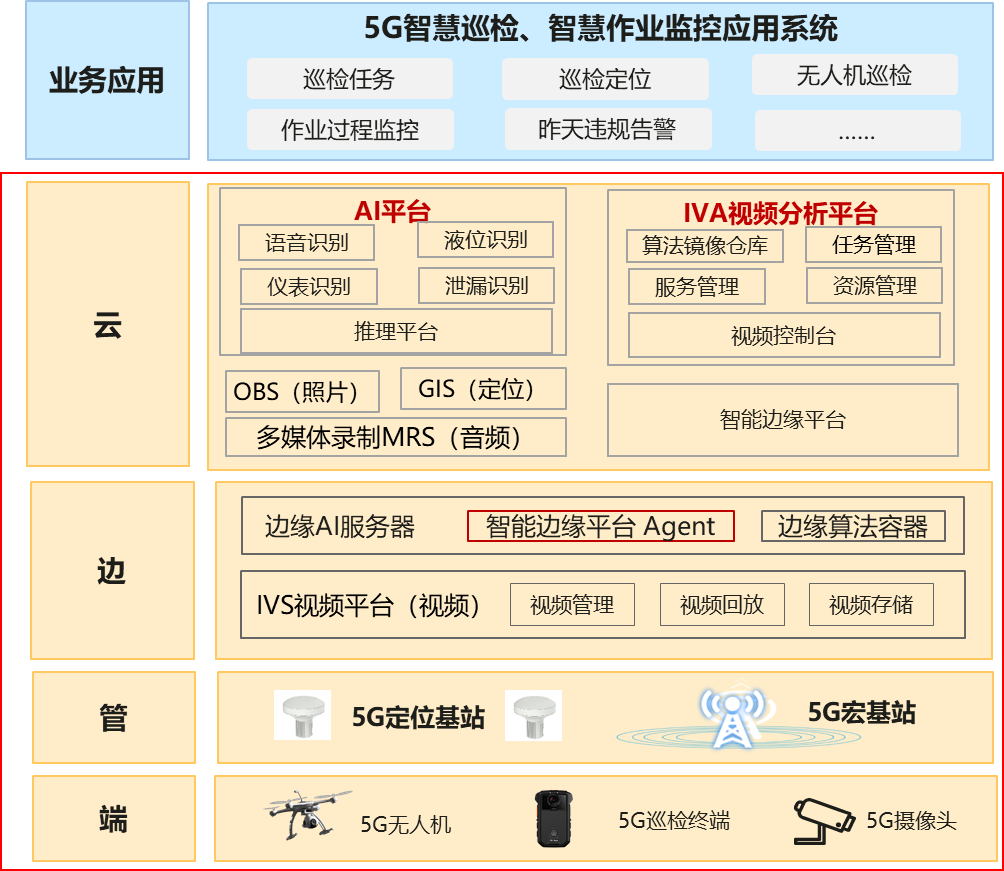 實現裝置5G在線巡檢應用滿足現場音視頻實時傳輸;實現基于5G+AI+紅外的裝置高位定點巡檢,滿足空地一體化無人機管線巡檢。