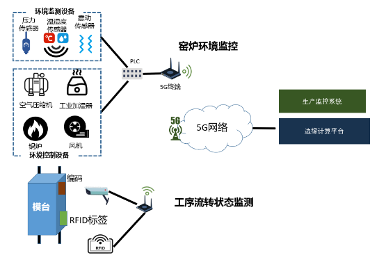 通過無線RFID技術與5G網絡配合實現生產進程統計、產品流程追溯,減少生產人員數量,將紙質工單轉向電子工單,避免大量手寫工單,提升無紙化生產,提升工人工作效率;