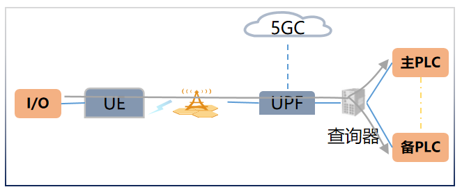 實時I/O通信是離散制造、流程工業中最為普遍也最為基礎的通信方式。在測試床規劃中,需驗證5G服務于單/雙無線實時I/O通信、冗余PLC與實時I/O通信、雙發選收冗余傳輸I/O實時通信等通信場景。
