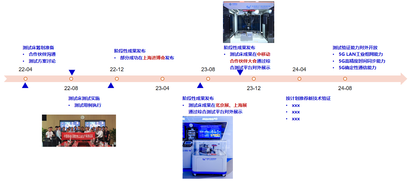 2023年12月-未來:基于測試床,繼續驗證5G新方案、新能力;同時對合作伙伴開放測試床在5G高精度授時、5G LAN工業組網、5G確定性通信的測試驗證能力。