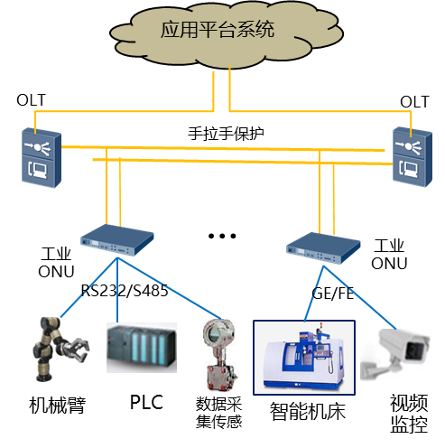 整體組網采用OLT主備端口1+1保護,網絡故障支持50ms快速倒換,滿足生產線高可靠性的網絡訴求。