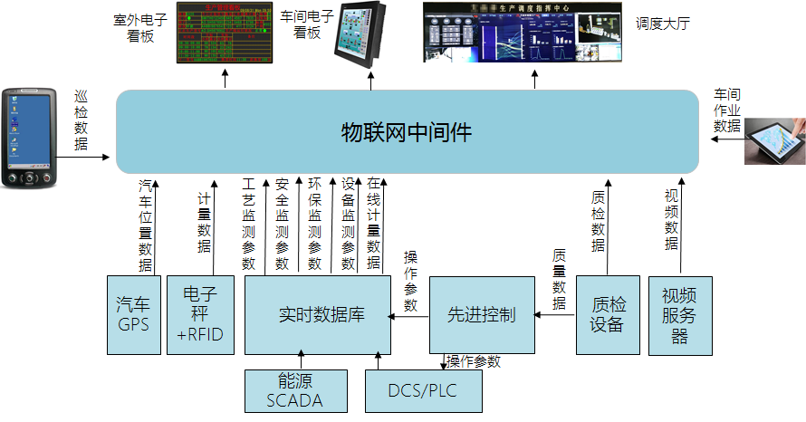 智能物聯(lián)的范圍包括:控制系統(tǒng)實時數(shù)據(jù)、質(zhì)檢設(shè)備數(shù)據(jù)、電子秤計量數(shù)據(jù)、汽車GPS數(shù)據(jù)、巡檢數(shù)據(jù)、現(xiàn)場作業(yè)數(shù)據(jù)、調(diào)度指令及作業(yè)指令數(shù)據(jù)、視頻數(shù)據(jù)等。