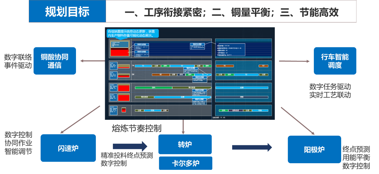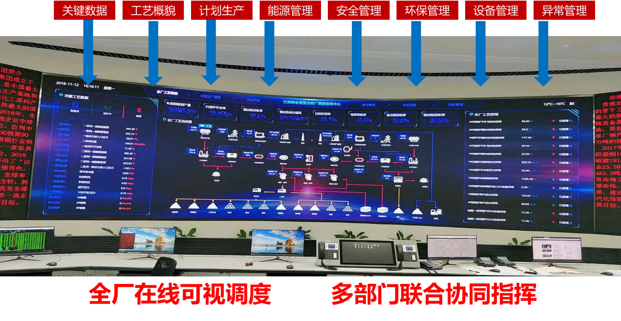 打造中國首家銅冶煉智能工廠,包括生產(chǎn)管理、供應(yīng)鏈管理、設(shè)備管理、能源管理、安環(huán)管理、輔助決策。