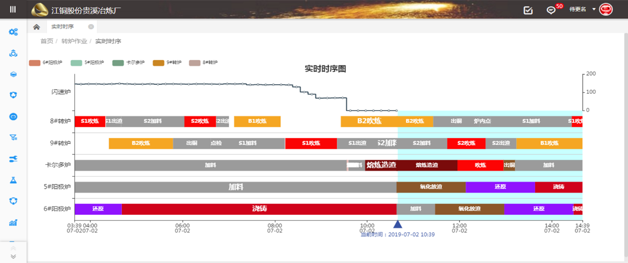 根據(jù)熔煉作業(yè)數(shù)據(jù)自動按熔爐組實時狀態(tài)形成節(jié)奏時序圖,提升整個熔煉系統(tǒng)調(diào)度指揮管理的智能化水平,以信息共享、過程可控、科學預(yù)判為重心,構(gòu)建閃速爐、轉(zhuǎn)爐、陽極爐的生產(chǎn)管控的智能化支撐,共享三大爐完整的作業(yè)進度,及時、準確調(diào)整作業(yè)要求,實現(xiàn)作業(yè)預(yù)期判斷和產(chǎn)品質(zhì)量最優(yōu)控制。