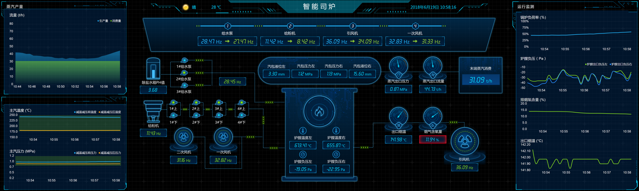 在鍋爐集控室提供一套電子看板系統,在電子看板上展示司爐相關的關鍵參數,同時定期為司爐工展示司爐建議。如下圖所示: