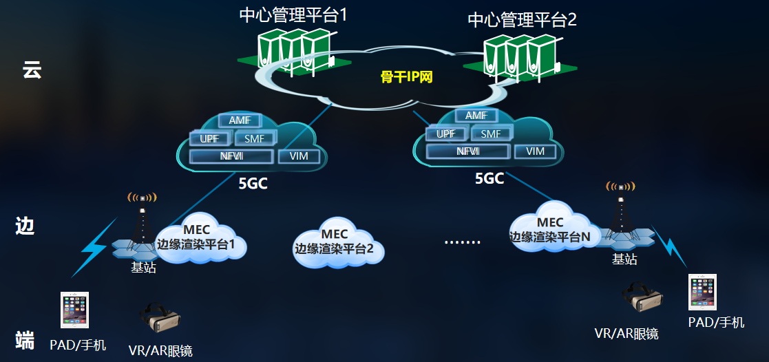 基于在5G、XR技術等方面的雄厚積累,中興通訊推出了以PAD/手機/VR和AR眼鏡客戶端、邊緣云XR渲染平臺和中心云管理平臺為主體的三級系統架構設計。系統具備故障弱化能力,在中心管理平臺不可用的情況下,保證現有的邊緣服務不中斷。系統利用邊緣云XR渲染平臺計算能力,釋放終端壓力,保證XR順暢運行,改善體驗。