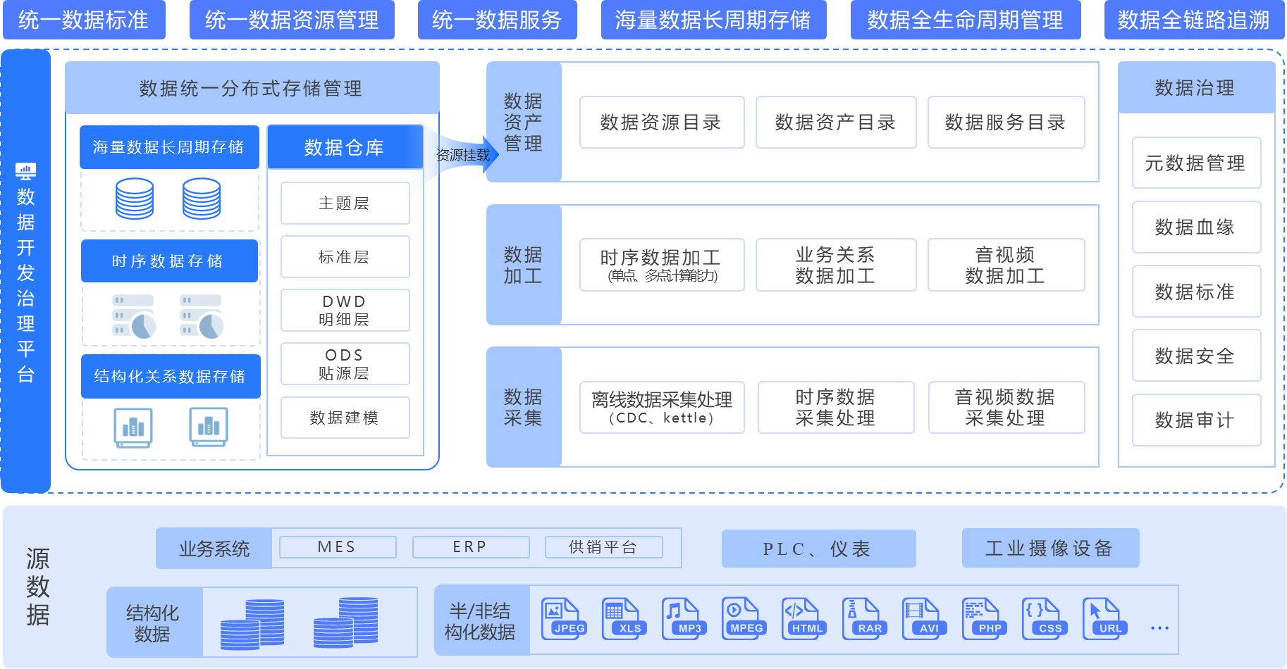 數(shù)據(jù)開發(fā)治理平臺(tái)提供具有行業(yè)特征的一站式智能制造數(shù)據(jù)服務(wù),支持?jǐn)?shù)據(jù)全生命周期管理,集數(shù)據(jù)采集、存儲(chǔ)、開發(fā)、治理等功能于一體,為上層平臺(tái)或應(yīng)用提供數(shù)據(jù)開發(fā)與服務(wù)能力,支撐基于大數(shù)據(jù)的智能應(yīng)用高效開發(fā)和布署,提高生產(chǎn)要素配置與利用效率,推進(jìn)生產(chǎn)數(shù)據(jù)持續(xù)創(chuàng)造價(jià)值,實(shí)現(xiàn)以經(jīng)驗(yàn)和直覺為核心的作業(yè)決策到以數(shù)據(jù)為驅(qū)動(dòng)的智能服務(wù)的進(jìn)化。