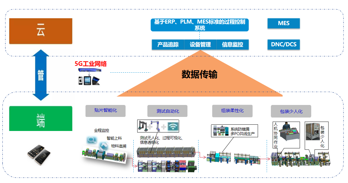 引言:隨著5G時(shí)代的到來,智能終端成為集5G通信、柔性顯示、高端制程芯片等于一體的復(fù)雜精密電子產(chǎn)品典型代表。同時(shí),智能終端產(chǎn)品快速迭代、多品種小批量、趨于復(fù)雜組成及豐富的功能,也對(duì)終端制造生產(chǎn)線提出了更加柔性、數(shù)字化、精益與智能化的要求。中興通訊作為“數(shù)字經(jīng)濟(jì)的筑路者”,充分發(fā)揮自身既懂生產(chǎn)、又懂信息技術(shù)的優(yōu)勢(shì),持續(xù)深耕“數(shù)字化”與“柔性化”融合的智造解決方案創(chuàng)新實(shí)踐,不斷完善工業(yè)互聯(lián)網(wǎng)平臺(tái)建設(shè),搭建具有中興特色的“云管端”生產(chǎn)架構(gòu),積極探索創(chuàng)新技術(shù)應(yīng)用與成果轉(zhuǎn)化,打造基于數(shù)字化驅(qū)動(dòng)的數(shù)字化終端智能制造工廠,提升生產(chǎn)效率與質(zhì)量。