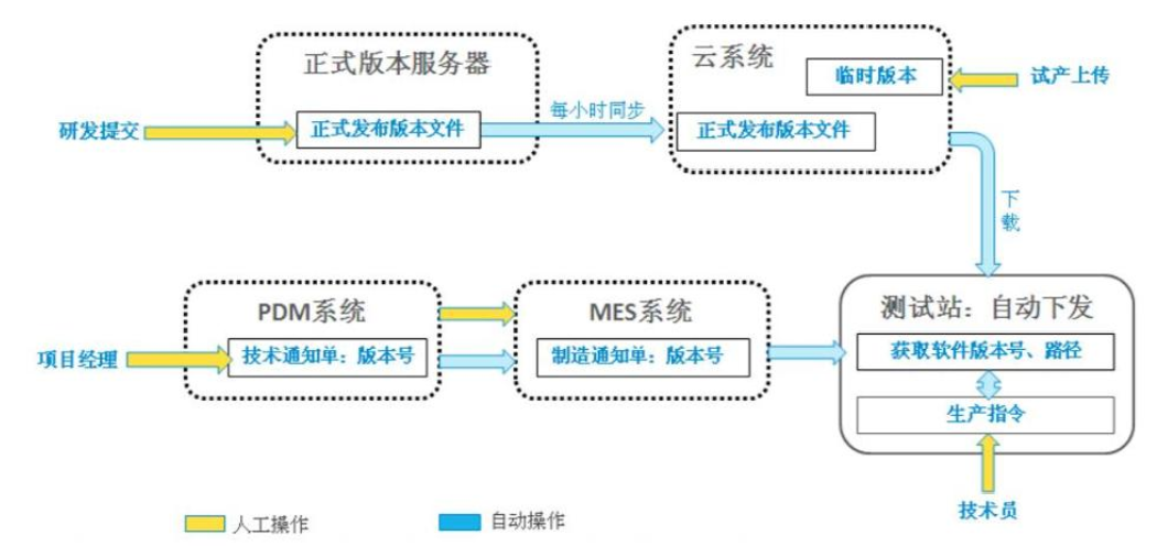 搭建優(yōu)化生產(chǎn)測(cè)試軟件自動(dòng)下發(fā)云平臺(tái),支持多平臺(tái)軟件自動(dòng)下發(fā)與自動(dòng)配置(如圖5所示)。利用云架構(gòu)進(jìn)行參數(shù)自動(dòng)下發(fā),大大提升了架線效率。針對(duì)原來的每個(gè)站位需要花錢買license的工位進(jìn)行技術(shù)改進(jìn),最終實(shí)現(xiàn)只需要云端一個(gè)license認(rèn)證即可的方案,節(jié)省了單個(gè)工位購(gòu)買license的費(fèi)用。