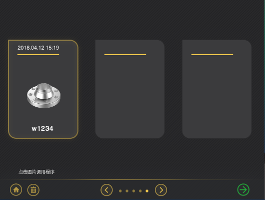 在調用程序模塊存儲著已編輯保存的所有法蘭程序,在此可對這些程序進行再次編輯調用或刪除等操作,這里主要介紹再次編輯調用已加工程序的功能。首先,根據實際需要選擇某個程序,后選擇相應加工工步重新進行編輯,修改工件尺寸、工藝參數等信息,一鍵生成可執行程序,完成修改,最后可直接運行加工程序,進行加工。以下展示部分功能界面: