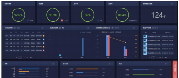 儀表盤(pán)管理:針對(duì)數(shù)據(jù)的可視化,儀表盤(pán)是數(shù)據(jù)最終呈現(xiàn)的方法,可以支持歷史數(shù)據(jù)、實(shí)時(shí)數(shù)據(jù)、上傳的文本數(shù)據(jù),以及故障數(shù)據(jù),主數(shù)據(jù)、故障預(yù)警數(shù)據(jù)等進(jìn)行可視化展示,操作方便,支持多種類(lèi)型的圖標(biāo)構(gòu)建。