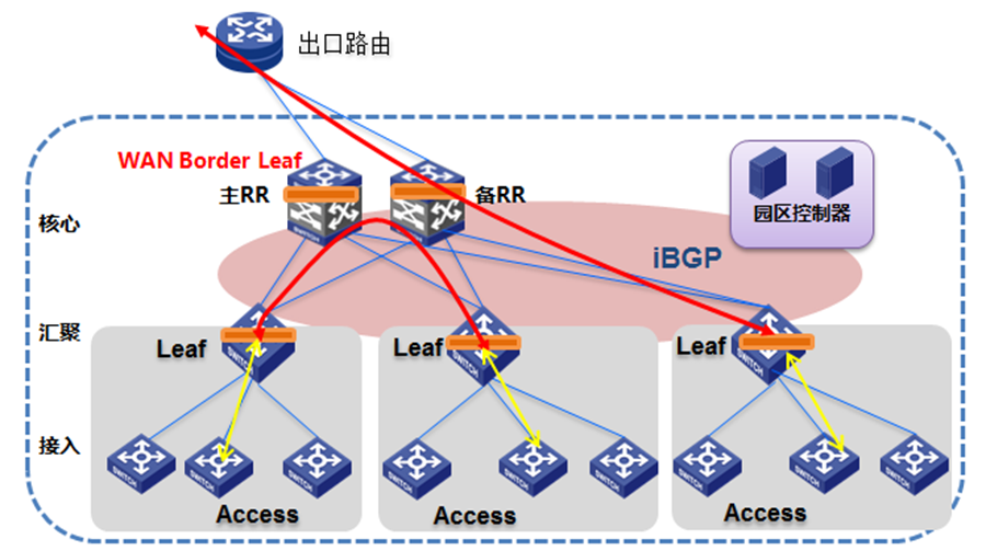 圖6 工廠核心匯聚層VxLAN網絡示意圖