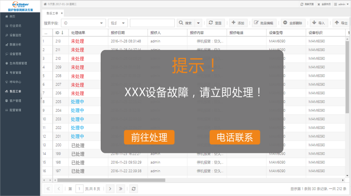 與鍋爐物聯(lián)網(wǎng)系統(tǒng)進(jìn)行數(shù)據(jù)聯(lián)動(dòng),客戶來電時(shí)即可彈屏該客戶對(duì)應(yīng)設(shè)備信息。