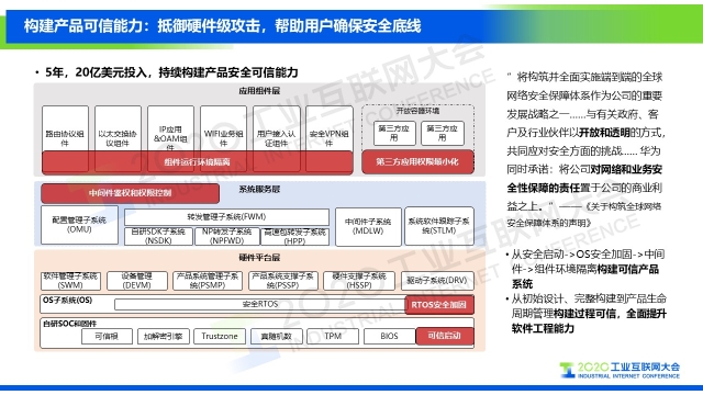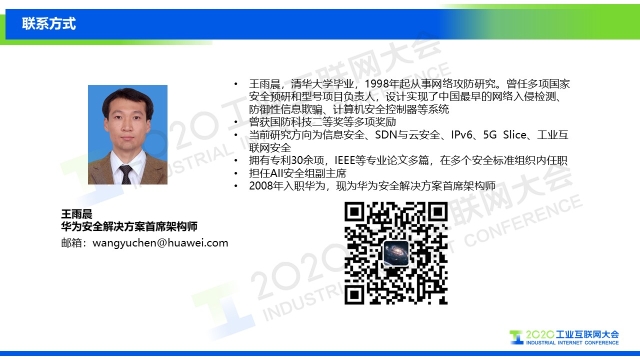 8月30日下午,在2020工業(yè)互聯(lián)網(wǎng)大會“工業(yè)互聯(lián)網(wǎng)安全”主題論壇上,華為技術(shù)有限公司安全領(lǐng)域解決方案首席架構(gòu)師王雨晨以《工業(yè)互聯(lián)網(wǎng)安全體系建設(shè)——半導體高端制造業(yè)安全實踐》為題作演講,分享了華為在工業(yè)互聯(lián)網(wǎng)安全體系建設(shè)方面的經(jīng)驗,以及華為在半導體高制造行業(yè)的應用實踐。