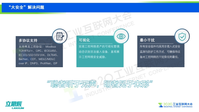 在2020工業(yè)互聯(lián)網(wǎng)大會(huì)“工業(yè)互聯(lián)網(wǎng)安全”主題論壇上,北京立思辰信息安全科技集團(tuán)工業(yè)互聯(lián)網(wǎng)事業(yè)部技術(shù)總監(jiān)郭占先發(fā)表題為《保衛(wèi)工控安全,護(hù)航國(guó)計(jì)民生——工業(yè)互聯(lián)網(wǎng)“大安全”可知可管》的演講,介紹了立思辰在工業(yè)控制安全方面“可知”“可管”的實(shí)施路徑。