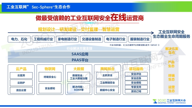 “在安恒過去的實踐過程中,我們發現困擾中小企業數字化改造、上云上平臺最大的問題就是解決服務商與企業之間的信任問題,我們針對性的推出一站式安全服務平臺,與我們的工業互聯網的工程服務商或者企業數字化轉型服務商共同去運營這樣的平臺,把已有的安全能力SaaS化、軟件化、虛擬化,把我們的安全助手,巡檢、服務、監管、應急能力,打造成公共資源,為下游的各個行業去賦能,以降低中小企業在享受安全服務的成本。這樣也能夠讓他們更好的構建信任關系,為整個體系的發展和建設甚至為以后的工業企業上云上平臺做好保護工作。
