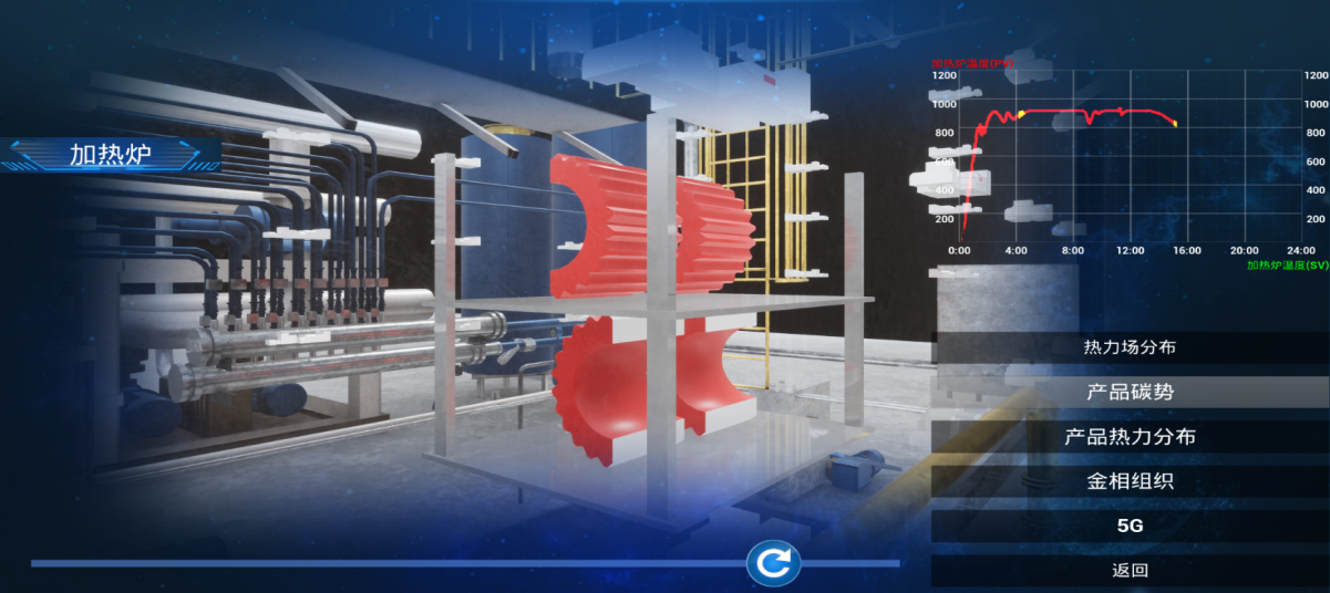 航天云網所屬重慶公司基于工業互聯網,利用5G+VR+數字孿生的新技術,實現熱處理工廠爐內溫度場分布、滲碳過程可視化,降低人工作業風險;預測碳勢分布,實時調整整爐內參數,提高工藝穩定性,降低產品報廢率,實現熱處理過程遠程運維新模式。