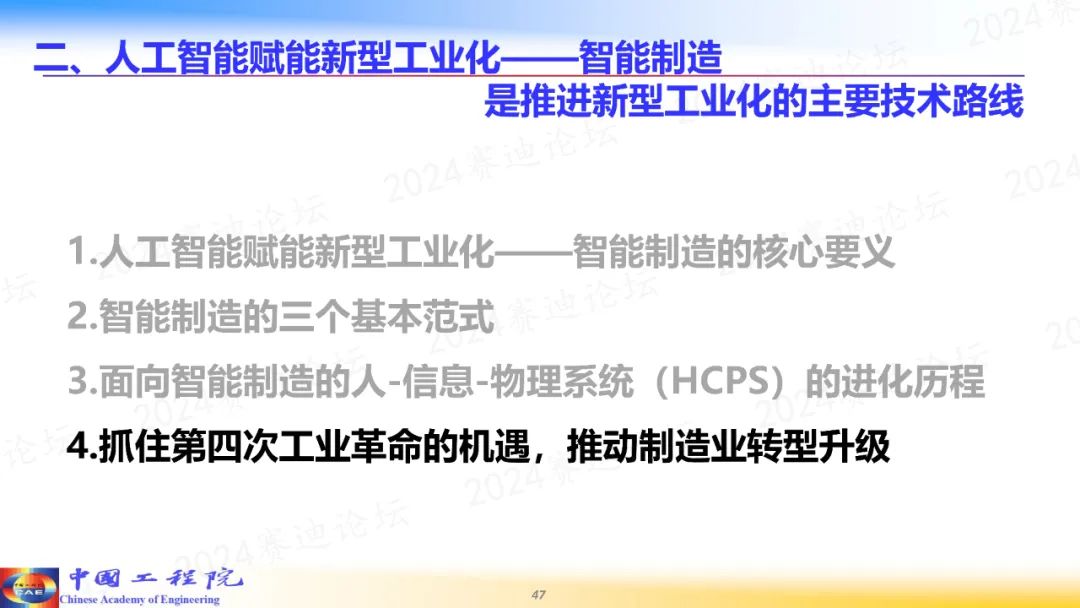 “推進新型工業化,加快建設制造強國,走一條什么樣的技術路線?要推進人工智能賦能新型工業化。”周濟表示。
