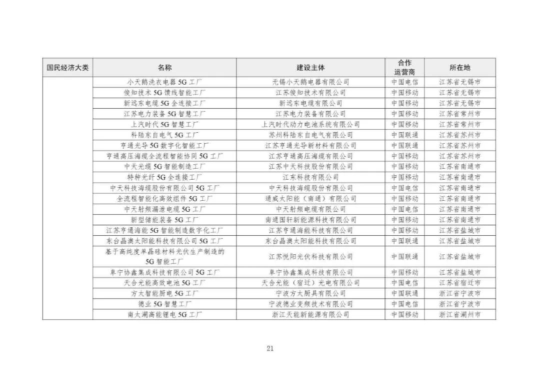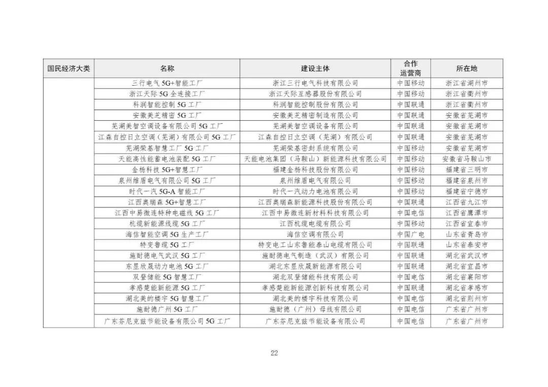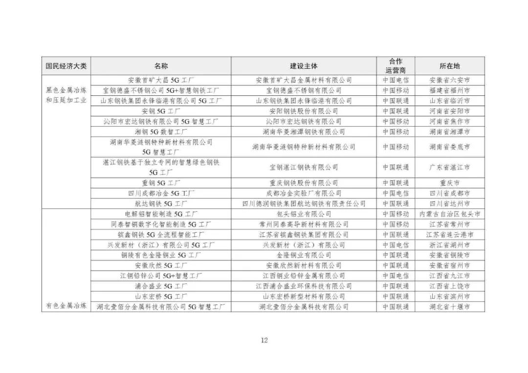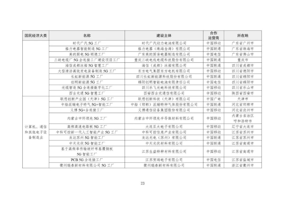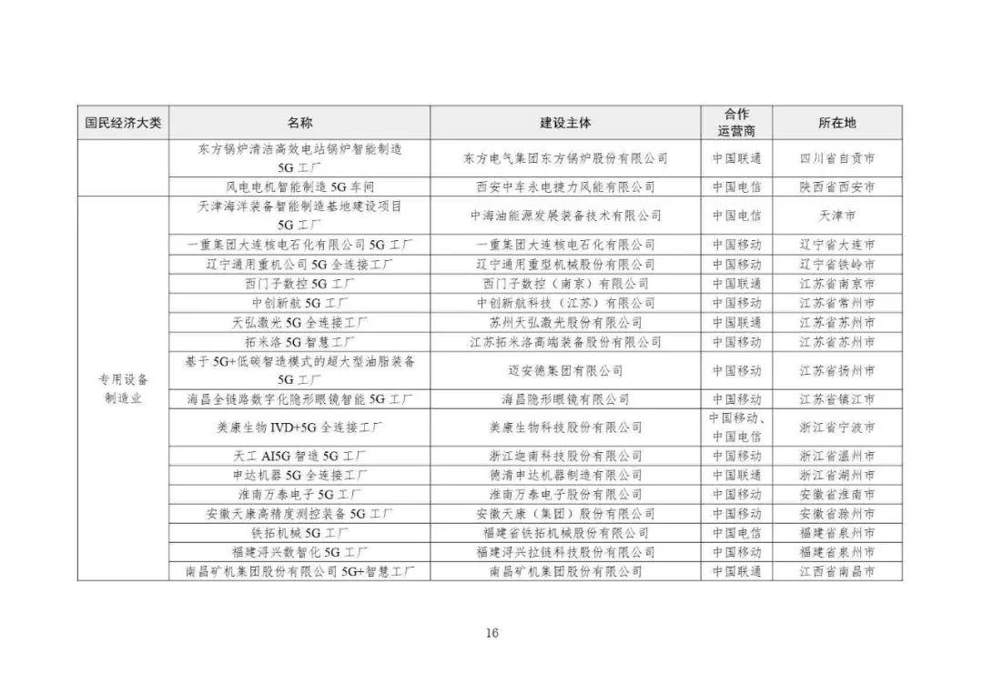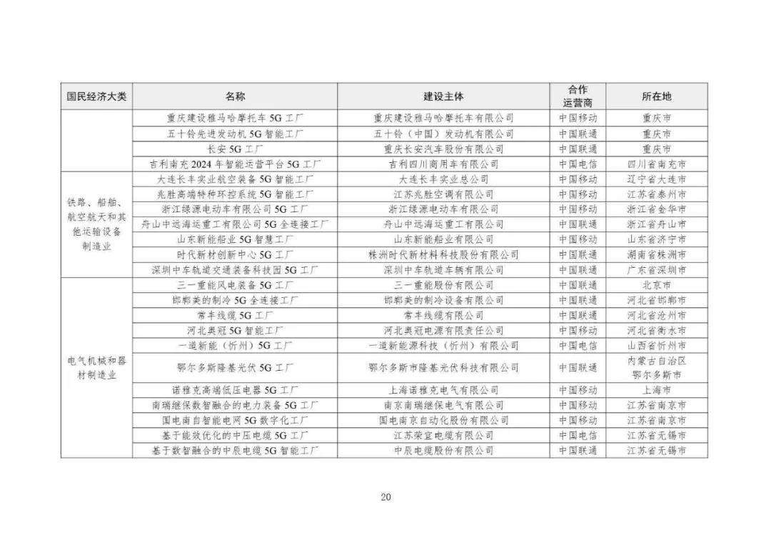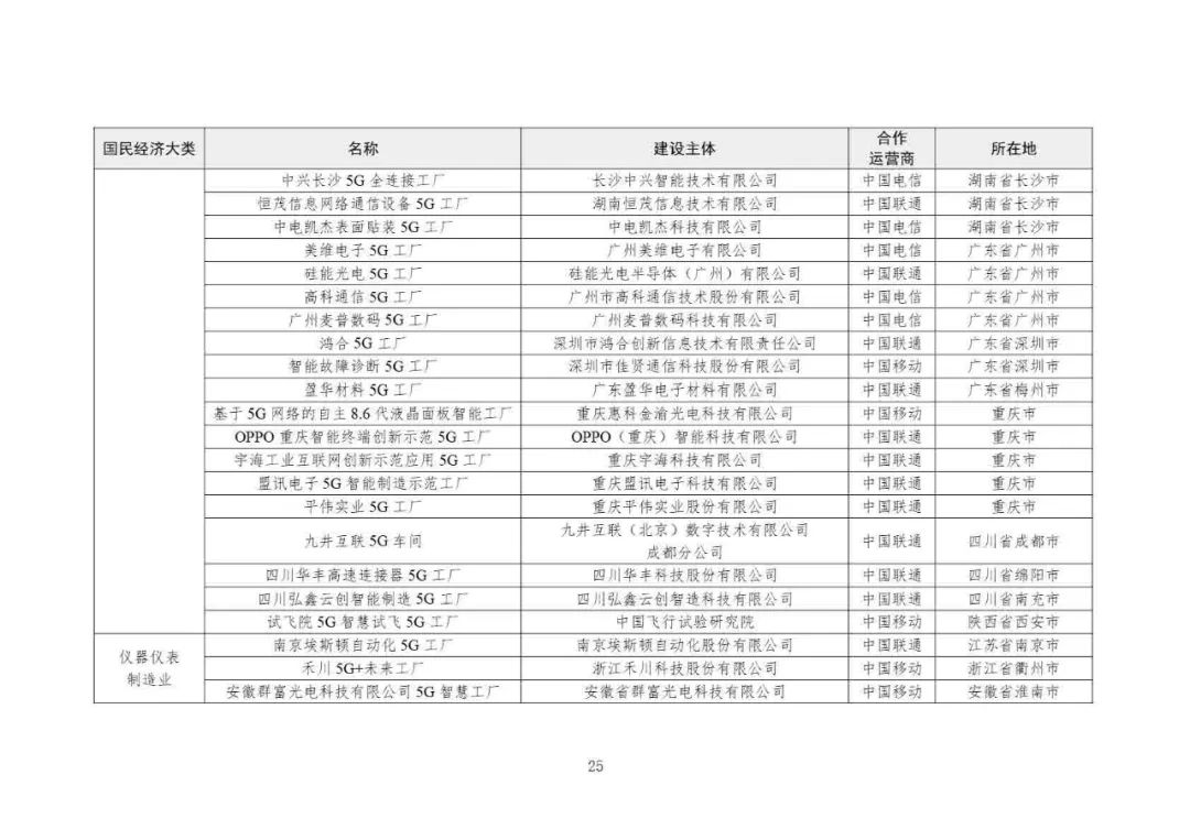 2025年5G工廠名錄: