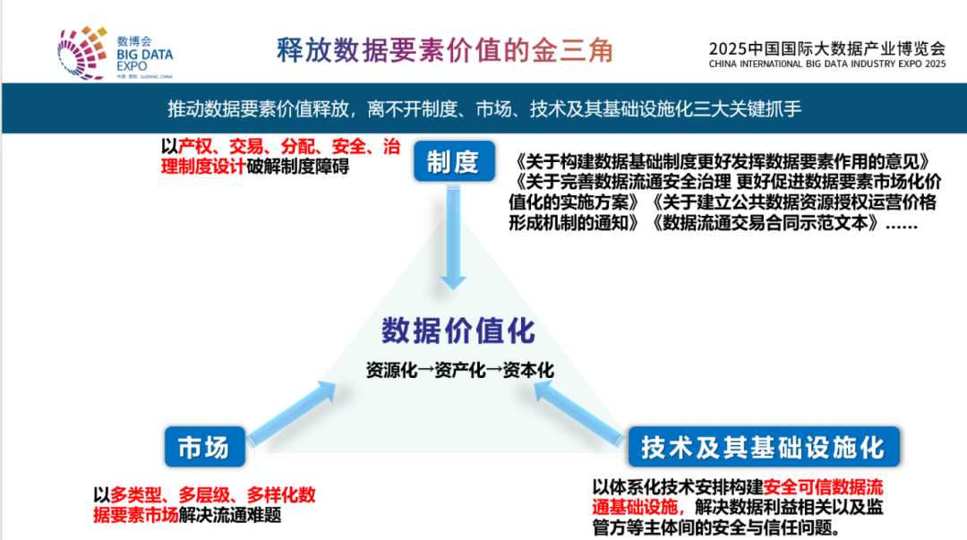 釋放數據要素價值是一個“金三角”:一是制度,二是市場,三是技術。其中,技術方面最終要通過一個基礎設施化的方式來保障實現全國范圍內跨行業、跨區域數據價值的釋放。