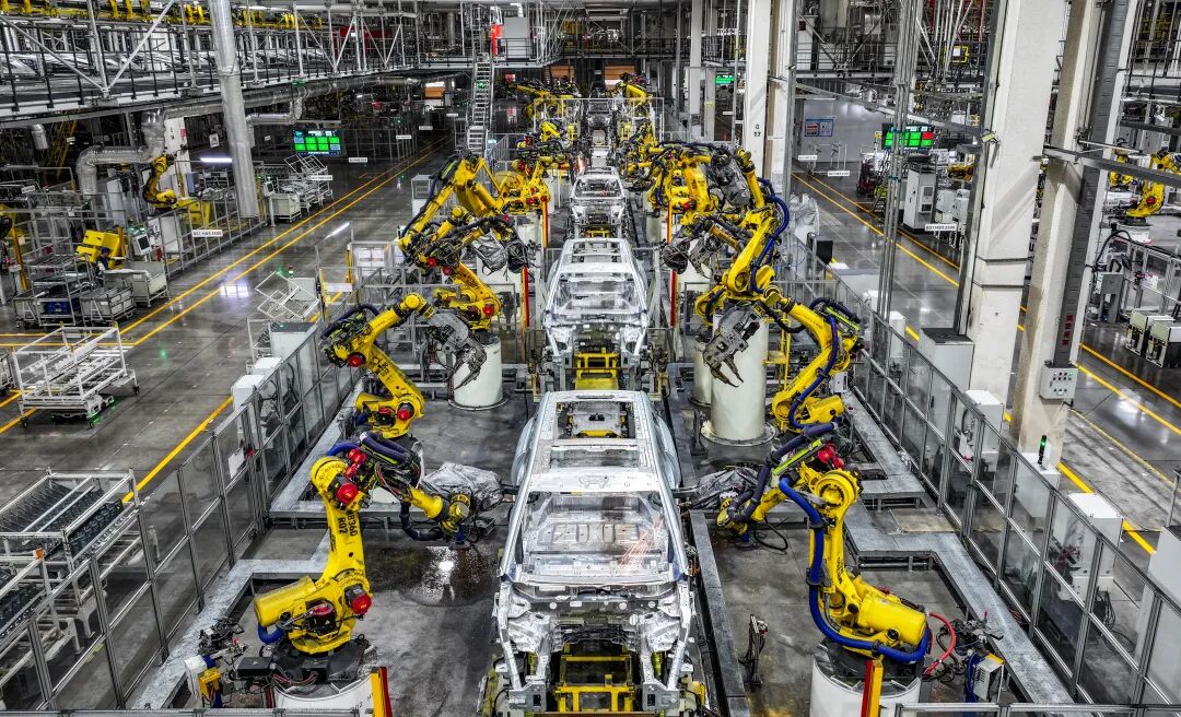 位于重慶市兩江新區的賽力斯汽車超級工廠拍攝的自動化生產作業現場。 新華社記者 王全超 攝