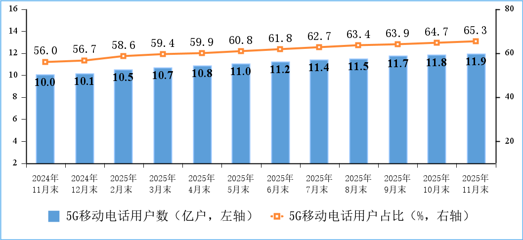 5G移動(dòng)電話(huà)用戶(hù)達(dá)11.93億戶(hù) 占比超65%
