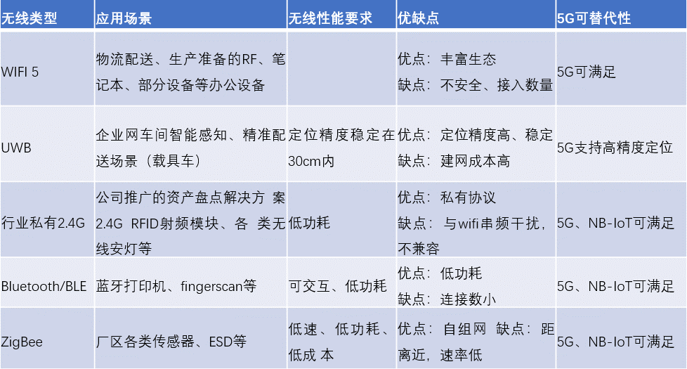 表1:5G對其他工業無線網絡技術可替代性分析
