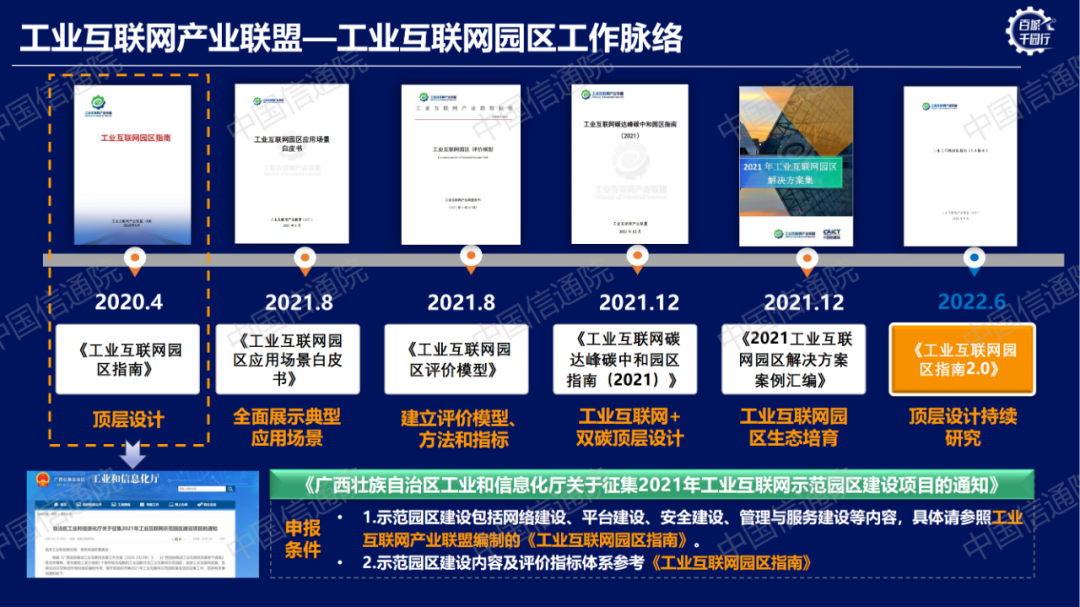 為有效指導(dǎo)工業(yè)互聯(lián)網(wǎng)園區(qū)的建設(shè)、運營與發(fā)展,工業(yè)互聯(lián)網(wǎng)產(chǎn)業(yè)聯(lián)盟于2020年4月發(fā)布《工業(yè)互聯(lián)網(wǎng)園區(qū)指南》,為產(chǎn)業(yè)界提供了園區(qū)轉(zhuǎn)型升級的參考和借鑒。隨著國家和各地十四五規(guī)劃的相繼出臺,以及圍繞做強做優(yōu)做大數(shù)字經(jīng)濟、促進數(shù)字化綠色化協(xié)同轉(zhuǎn)型發(fā)展、加速中小企業(yè)特色產(chǎn)業(yè)集群發(fā)展等政策措施的陸續(xù)發(fā)布,工業(yè)互聯(lián)網(wǎng)園區(qū)發(fā)展進一步提速,并呈現(xiàn)綠色低碳、虛實融合等新發(fā)展趨勢。在此背景下,為幫助產(chǎn)業(yè)界更加充分了解園區(qū)新的發(fā)展趨勢,更好地開展工業(yè)互聯(lián)網(wǎng)園區(qū)改造和建設(shè),工業(yè)互聯(lián)網(wǎng)產(chǎn)業(yè)聯(lián)盟在工業(yè)和信息化部的指導(dǎo)下,編制完成了《工業(yè)互聯(lián)網(wǎng)園區(qū)指南(2.0版本)》(以下簡稱指南(2.0版本))。