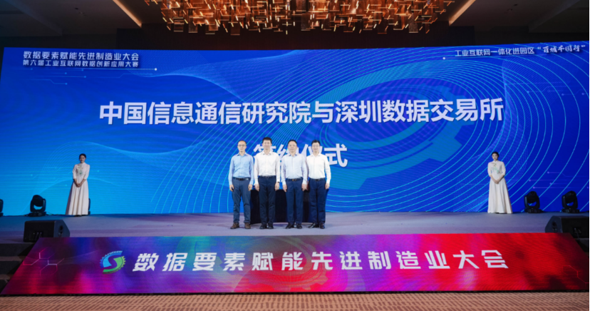 會上,中國信息通信研究院(以下簡稱:中國信通院)與深圳數(shù)據(jù)交易所有限公司(以下簡稱:深圳數(shù)據(jù)交易所)在深圳簽署戰(zhàn)略合作協(xié)議。中國信通院總工程師敖立和深圳數(shù)據(jù)交易所董事長李紅光見證簽約儀式,中國信通院信息化與工業(yè)化研究所副所長劉默和深圳數(shù)據(jù)交易所副總經(jīng)理王騰分別代表雙方簽約。
