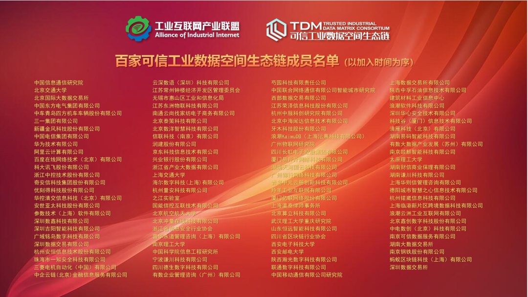 此外,論壇進行了可信工業數據空間生態鏈成員單位迎新揭幕儀式,生態鏈自2021年成立,成員單位數量已正式突破100家,來自制造業、信息技術、科研院校、數據交易服務機構等領域的企業加強協作,致力于共同探索與實踐可信工業數據空間的發展之路。