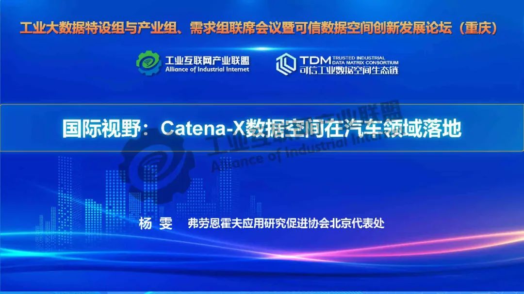 本期為您帶來由德國弗勞恩霍夫協會中國代表處代表楊雯帶來的《國際視野:Catena-X數據空間在汽車領域落地》。介紹了歐洲對數據空間的需求和定義,數據空間標準化、生態發展情況,以及德國弗勞恩霍夫協會與中國信息通信研究院在數據空間領域開展的深入合作。Catena-X旨在形成汽車行業主權可控多層次數據生態,為汽車價值鏈創建數據生態系統,構建全球汽車行業全價值鏈數據生態合作的宏大愿景。