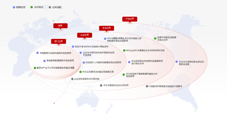 華為公司業(yè)務(wù)分布在170多個(gè)國家和地區(qū),隨著數(shù)字化的發(fā)展,華為需要通過數(shù)據(jù)的高效聯(lián)接、跨域使用控制、安全流通支撐復(fù)雜業(yè)務(wù)的全球協(xié)同。基于此,華為希望充分融合企業(yè)內(nèi)外部數(shù)據(jù),基于清算促進(jìn)數(shù)據(jù)價(jià)值的量化和分配,形成數(shù)據(jù)產(chǎn)生、交換、消費(fèi)的良性循環(huán),充分釋放數(shù)據(jù)價(jià)值。