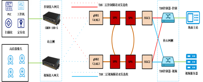 面向行業高確定性需求,5G+TAN(時間明晰網絡)技術通過內生雙發選收、多鏈路冗余傳輸、時延門限控制、跨時鐘域協同等技術,提供有界時延抖動、高可靠性、高精度時鐘同步等能力,實現端到端確定性傳輸。在5G(R16)環境下南向1588v2授時精度誤差小于500ns,軟件定義時延誤差小于10微秒,干擾環境下丟包率降低40%以上,時延降低20%以上,實現端側設備融合精簡,大幅降低成本。目前已研發5G確定性工業網關和配套的確定性控制器,實現雙5G傳輸,基站無感知切換,保障各類業務穩定流暢運行。