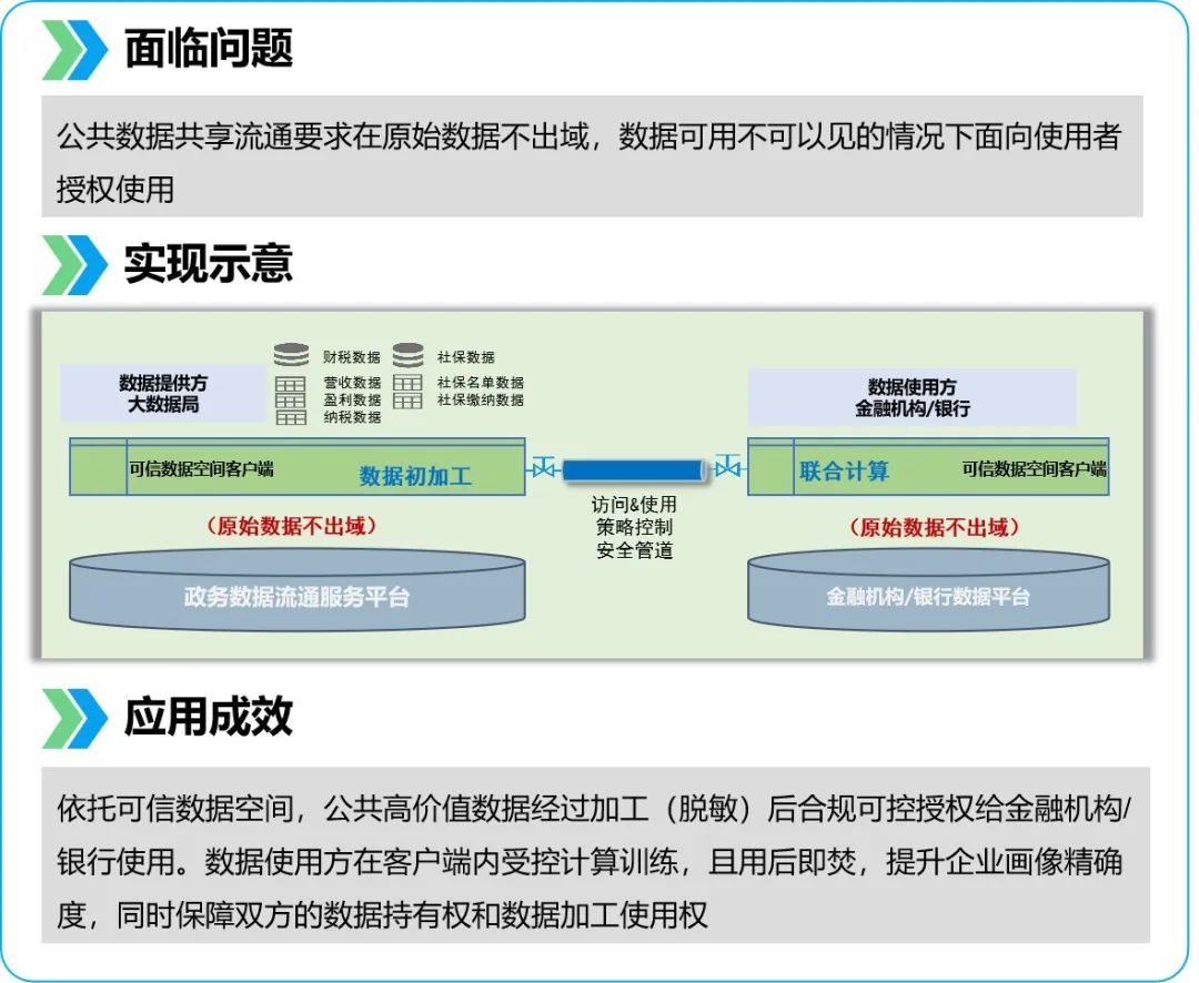 (2)公共數據授權運營與高效合規使用探索:確保公共數據可用不可見,可控可追溯,加速公共數據價值化進程