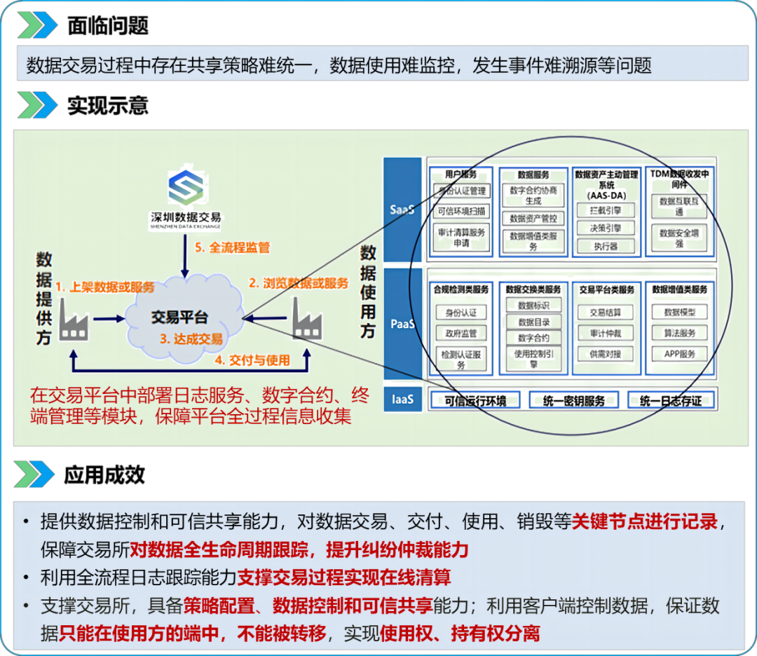 為數據流通各方提供一套基于技術的信任機制,針對進入空間的各類主體的身份進行認證,對數據跨主體、跨邊界的流通范圍、使用過程、使用方式等行為的控制和管理,保障現實世界中簽訂的數據使用協議的有效實施,并基于上述過程中的存證記錄支撐清算運營,促進數據價值的量化和分配。