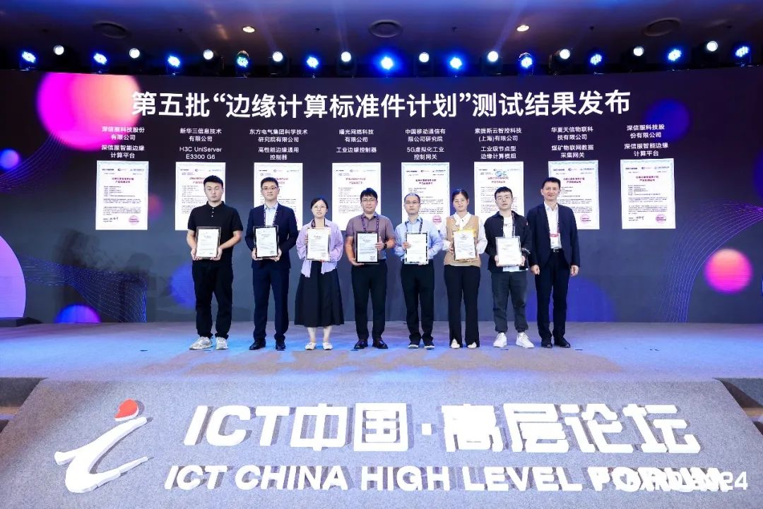 2024年9月26日,“邊緣計算標準件計劃”第五批測試結果在新型工業網絡創新論壇暨2024工業互聯網網絡創新大會上正式發布,由中國信息通信研究院總工程師敖立為通過測試企業頒發證書。