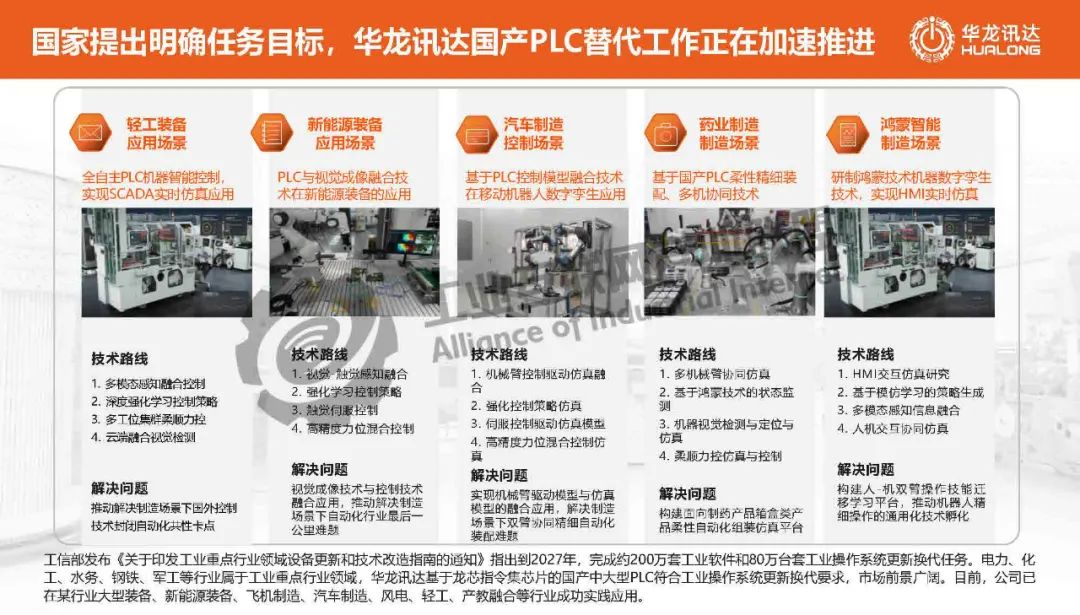 龍小昂介紹,工信部發(fā)布《關于印發(fā)工業(yè)重點行業(yè)領域設備更新和技術改造指南的通知》指出到2027年,完成約200萬套工業(yè)軟件和80萬臺套工業(yè)操作系統(tǒng)更新?lián)Q代任務。電力、化工、水務、鋼鐵、軍工等行業(yè)屬于工業(yè)重點行業(yè)領域,華龍訊達基于龍芯指令集芯片的國產(chǎn)中大型PLC符合工業(yè)操作系統(tǒng)更新?lián)Q代要求,已在某行業(yè)大型裝備、新能源裝備、飛機制造、汽車制造、風電、輕工、產(chǎn)教融合等行業(yè)成功實踐應用。