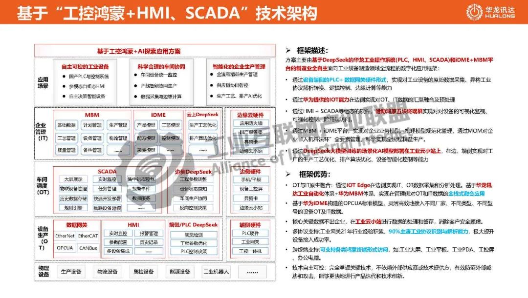 華龍工業(yè)操作系統(tǒng)是專為工業(yè)領域設計的全場景、分布式操作系統(tǒng),致力于構建跨設備、多場景的數(shù)字化工業(yè)世界,提供統(tǒng)一的工業(yè)軟 件基礎設施。華龍工業(yè)操作系統(tǒng)基于 OpenHarmony構建,創(chuàng)新了工業(yè)級分布式通信融合總線技術,基于OPC U國際標準 數(shù)字模型,通過與應用層的高效通信以及對各類設備的精準信息化建模,打破傳統(tǒng)工業(yè)操作系統(tǒng)的閉塞狀態(tài),有效解決智能制造領域的“數(shù)據(jù)孤島”難題,確保設備間互聯(lián)互通。