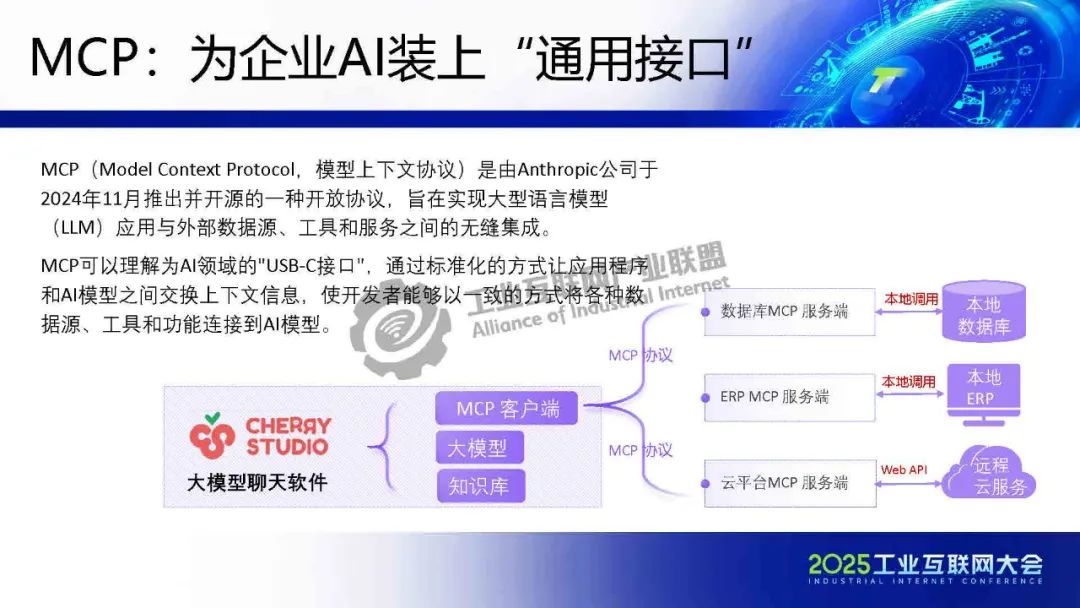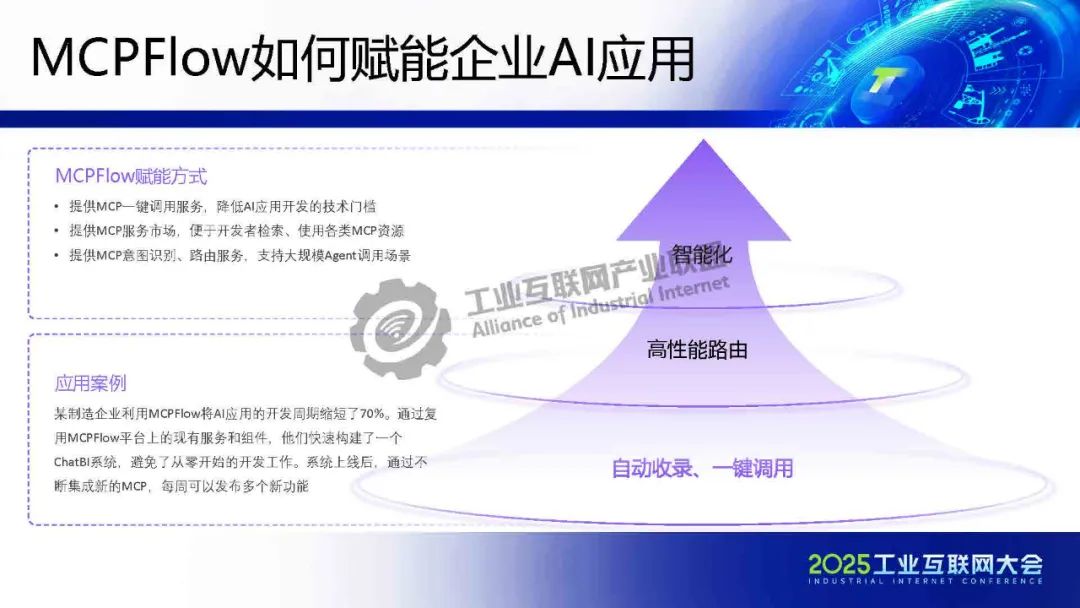 5月22日,在2025工業(yè)互聯(lián)網(wǎng)大會(huì)“人工智能與工業(yè)互聯(lián)網(wǎng)融合創(chuàng)新發(fā)展專(zhuān)題活動(dòng)”上,理工比特林克(蘇州)軟件信息技術(shù)服務(wù)有限公司技術(shù)總監(jiān)賀松發(fā)表了《MCPFLow:構(gòu)建工業(yè)互聯(lián)網(wǎng)AI應(yīng)用的連接器與創(chuàng)新生態(tài)》的主題演講。