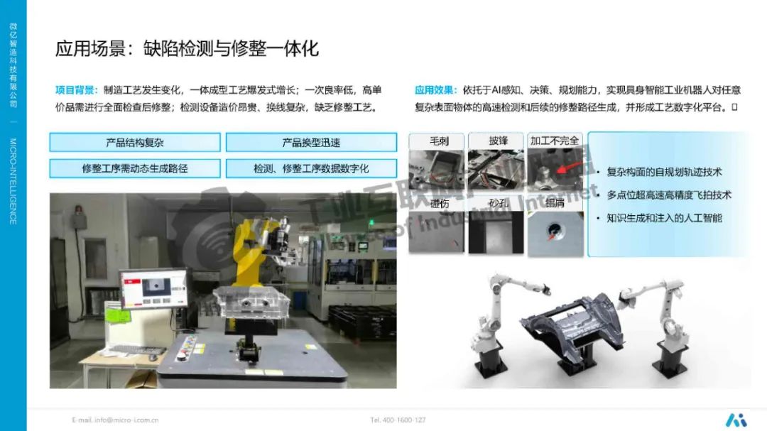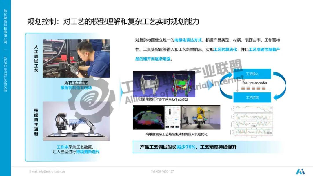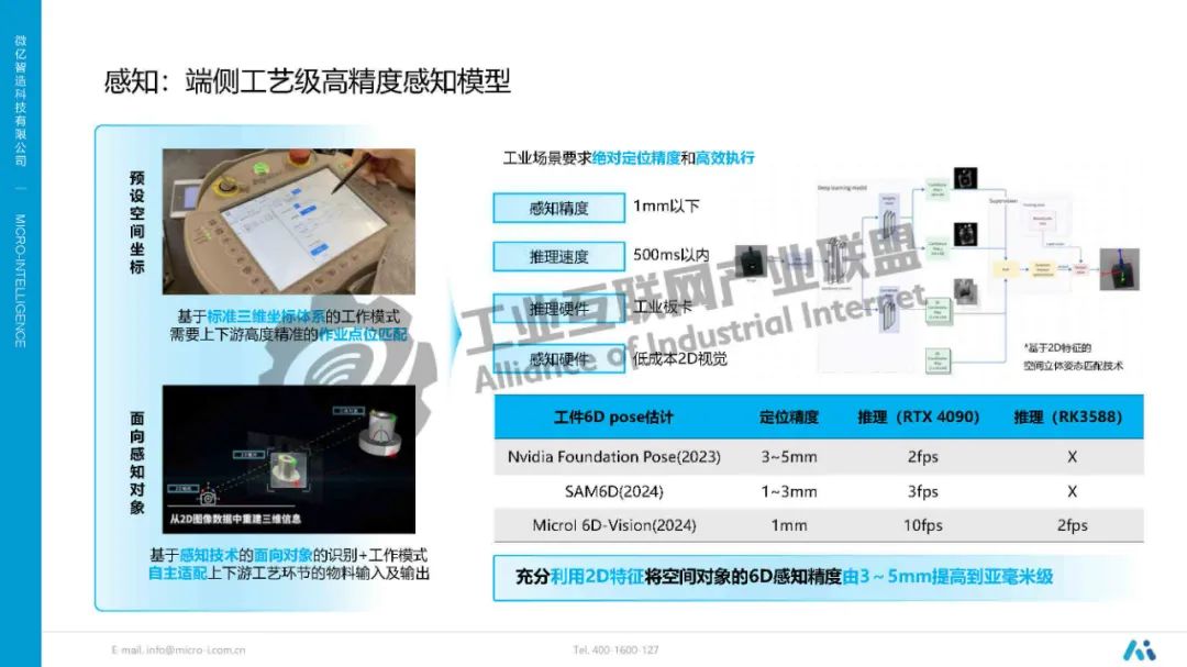 唐淼鑫介紹,工業(yè)場(chǎng)景要求絕對(duì)定位精度和高效執(zhí)行,充分利用2D特征將空間對(duì)象的6D感知精度由3~5mm提高到亞毫米級(jí)。對(duì)復(fù)雜構(gòu)面建立統(tǒng)一的向量化表達(dá)方式,根據(jù)產(chǎn)品類型、材質(zhì)、表面曲率、工作面特性、工具頭配置等輸入和工藝結(jié)果輸出,實(shí)現(xiàn)工藝的算法化,并且工藝準(zhǔn)確性隨著產(chǎn)品的鋪開而逐漸增強(qiáng)。