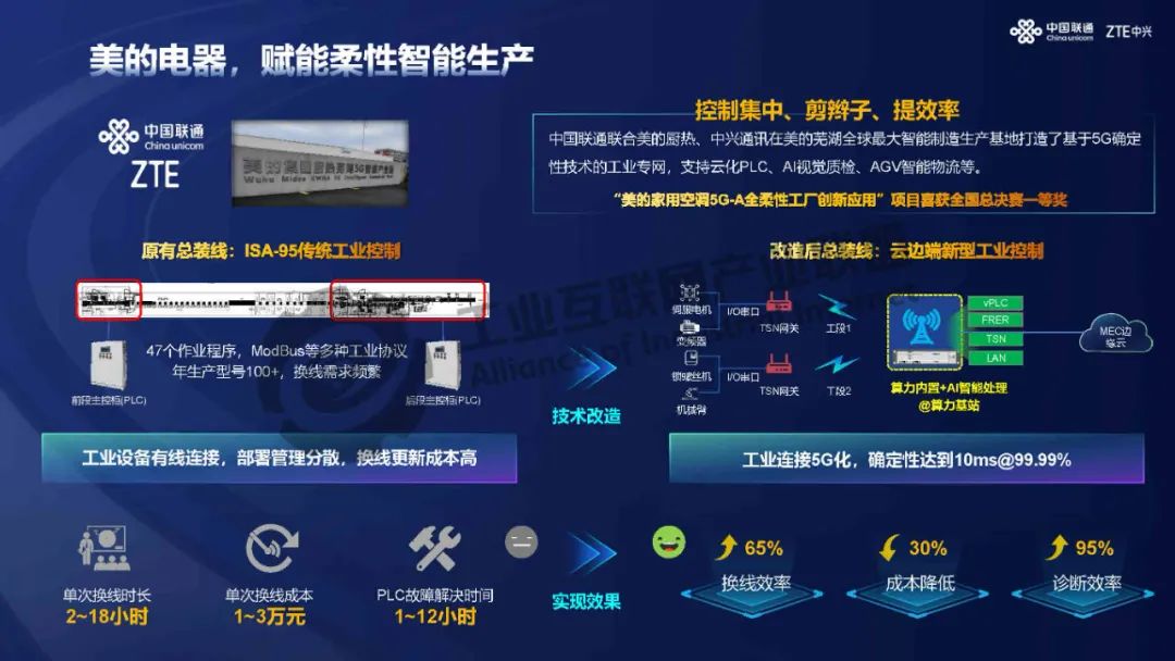 汪競(jìng)飛介紹,中興通訊在工業(yè)互聯(lián)網(wǎng)領(lǐng)域提出"5G+算力"融合方案,重點(diǎn)解決三大核心問題:1)構(gòu)建云邊端協(xié)同的新型工業(yè)網(wǎng)絡(luò)體系,推出5G算網(wǎng)一體機(jī),實(shí)現(xiàn)核心網(wǎng)、基站與行業(yè)應(yīng)用的預(yù)集成;2)提升工業(yè)級(jí)確定性,通過雙鏈路聚合等技術(shù)實(shí)現(xiàn)PLC控制4ms時(shí)延、5個(gè)9可靠性的商用能力;3)開發(fā)可視化運(yùn)維平臺(tái),使5G網(wǎng)絡(luò)像WiFi一樣簡(jiǎn)單易用。典型案例顯示,該方案在武鋼熱軋車間實(shí)現(xiàn)高溫環(huán)境無人化作業(yè),在美的空調(diào)工廠降低30%換線時(shí)間,南京濱江工廠實(shí)現(xiàn)裝備聯(lián)網(wǎng)率97.6%、人均產(chǎn)值提升81%。中興將持續(xù)推進(jìn)5G與工業(yè)場(chǎng)景深度融合,助力制造業(yè)數(shù)字化轉(zhuǎn)型。
