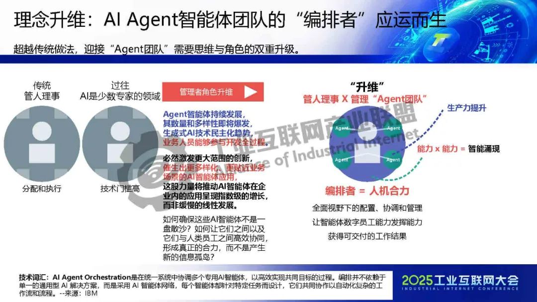 “編排者(Orchestrator)”理念是管理理念的根本性升維。管理核心職責不再僅僅是“管人理事”,更要以“系統(tǒng)思維”去設計和駕馭“人機混合團隊”,這個由人和AI Agent智能體生產力共同構成的、高度復雜的生產系統(tǒng)。