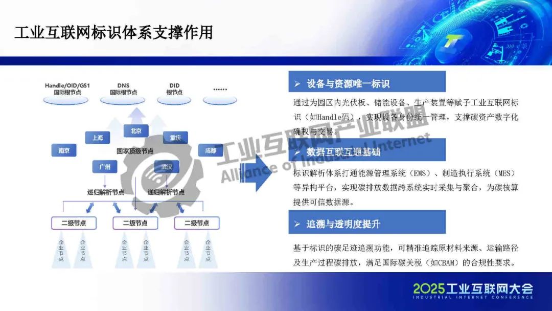 目前,標識解析體系已建成近400個二級節點,服務企業超過50萬家,具備了大規模應用的堅實基礎,隨著《工業互聯網標識解析體系"貫通"行動計劃(2024-2026年)》深入實施,標識體系已成為工業園區實現"雙碳"目標與數字化轉型的關鍵載體。