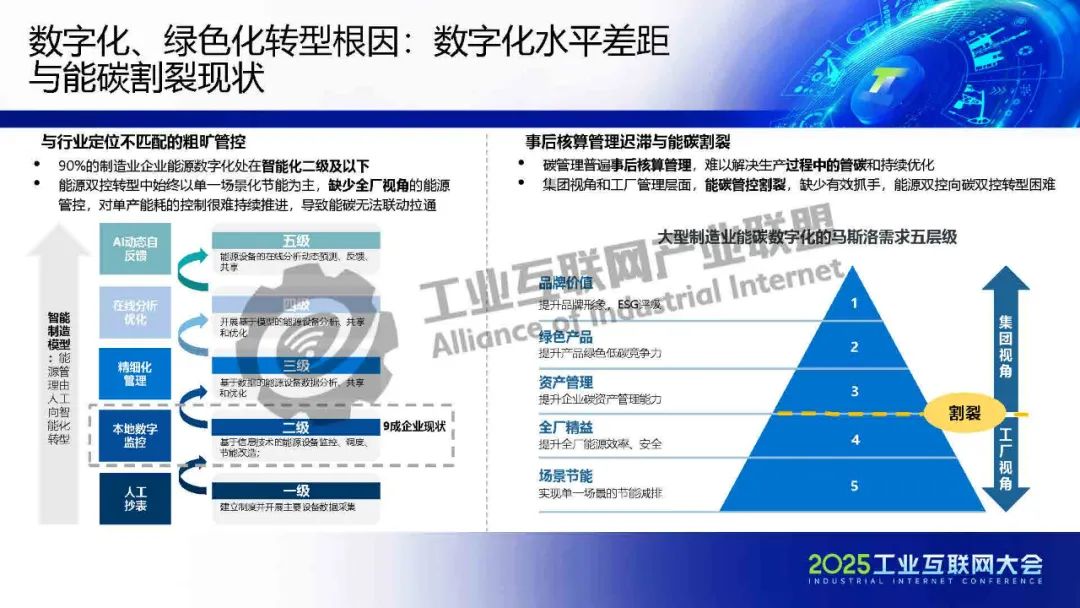 5月22日,在2025工業互聯網大會“工業數字化綠色化協同轉型專題活動”上,工業互聯網產業聯盟碳達峰碳中和工作組副主席、TCL格創東智科技有限公司能源雙碳事業部總經理王輝發表了《AI賦能高端制造業雙化協同轉型》的主題演講。