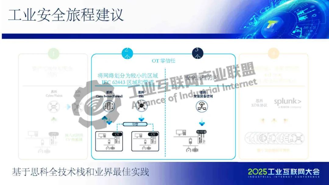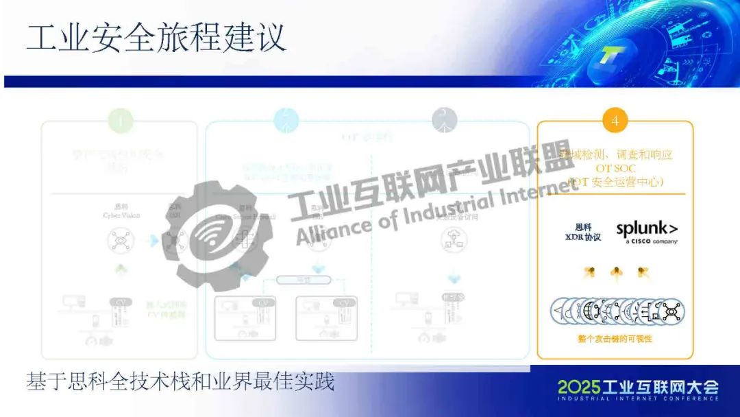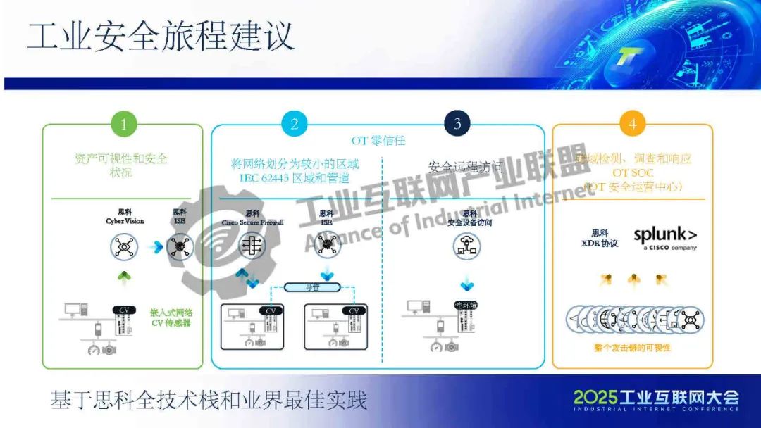 凌軍介紹,思科的工業安全解決方案旨在打通從工控現場感知到OT安全運營中心的完整安全鏈條,通過模擬化工廠PLC攻擊場景,生動展示了工業網絡脆弱性和工業安全的重要性。思科建議基于全技術棧和業界最佳實踐,實現OT資產的動態可視化、網絡分段和零信任訪問,并利用Cyber Vision和ISE認證平臺進行OT設備分類與風險評分,統一在Splunk SOC平臺形成統一工業安防儀表盤。制造企業需結合OT可視化、網絡分段和OT SOC能力,構建涵蓋威脅檢測到事件響應的綜合性安全體系,以應對未來工業網絡的安全挑戰。