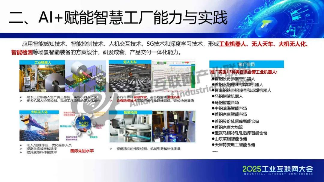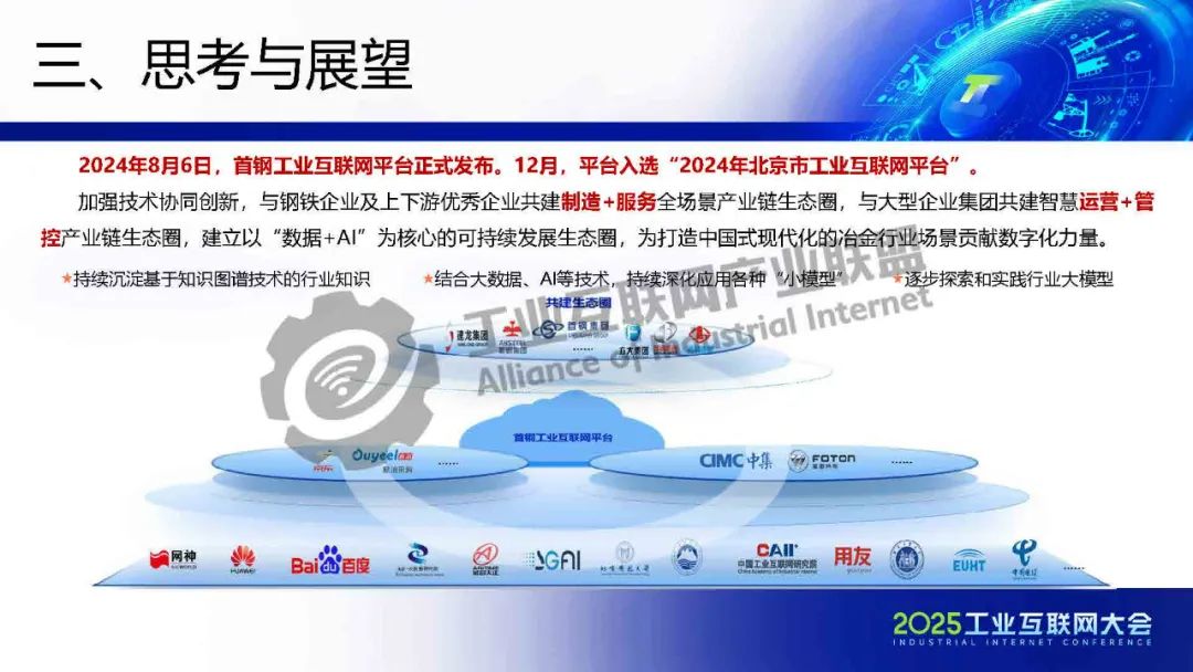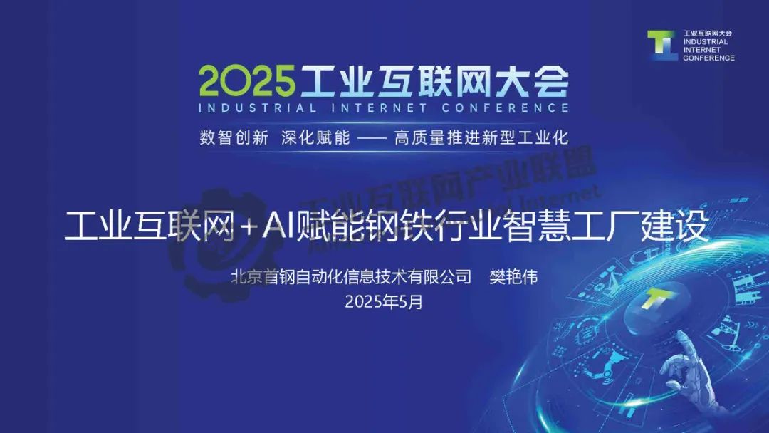 5月22日,在2025工業(yè)互聯(lián)網(wǎng)大會(huì)“工業(yè)互聯(lián)網(wǎng)平臺(tái)高質(zhì)量發(fā)展專題活動(dòng)”上,北京首鋼自動(dòng)化信息技術(shù)有限公司工業(yè)互聯(lián)網(wǎng)產(chǎn)業(yè)規(guī)劃總監(jiān)樊艷偉發(fā)表了《工業(yè)互聯(lián)網(wǎng)+AI賦能鋼鐵行業(yè)智慧工廠建設(shè)》的主題演講。